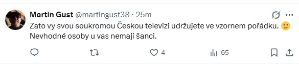Další komentář mu sarkasticky připomněl otázku nestrannosti veřejnoprávní instituce: „Zato vy svou soukromou Českou televizi udržujete ve vzorném pořádku, nevhodné osoby u vás nemají šanci,“ napsal přispěvatel do diskuse.