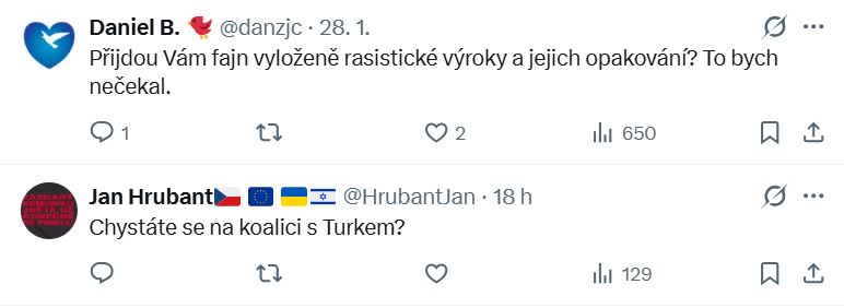 „Přijdou vám fajn vyloženě rasistické výroky a jejich opakování? To bych nečekal,“ nechápou někteří přirovnání Jurečky. A padá k němu i otázka, zdali nakonec nechystá „koalici s Turkem“, jehož údajné problematické výroky Pavel jmenuje jako překážku v jeho jmenování ministrem.