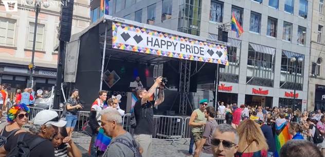 Svoje barvy (v duhové variantě) ale do průvodu vynesly i velké korporace. Třeba operátor Vodafone, jak můžete vidět na obrázku. Byla tu ale také Škoda auto a další.