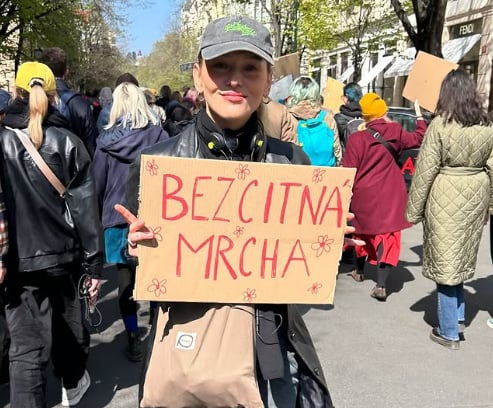 Na akci Praha je feministická se objevila také nejmladší poslankyně STAN Julie Smejkalová.