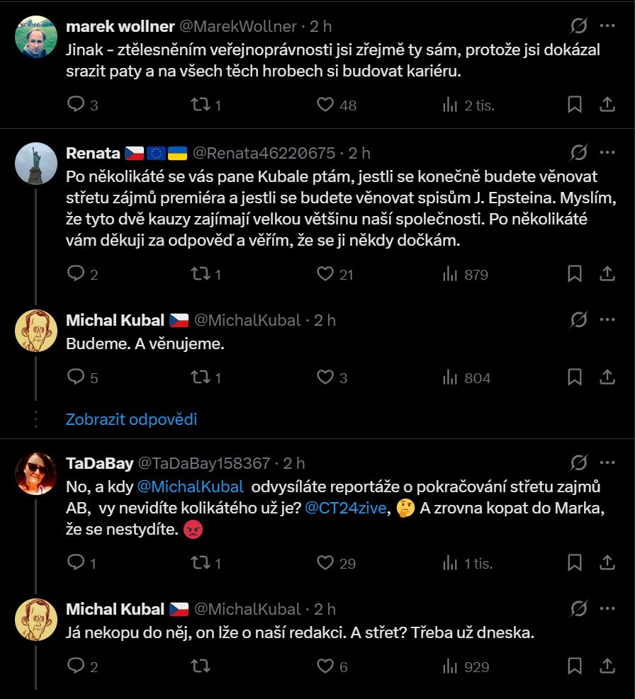 Do debaty se zároveň zapojili i další uživatelé sociálních sítí, kteří se Kubala ptali na témata, jimž by se podle nich mělo zpravodajství ČT24 intenzivněji věnovat, například na pokračování kauzy střetu zájmů Andreje Babiše. Kubal odpověděl stručně: „Budeme. A věnujeme.“