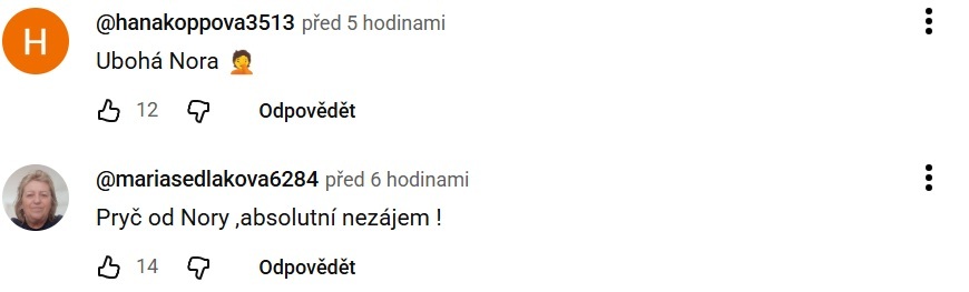 Podle dalších uživatelů je novinářka „ubohá“. „Pryč od Nory, absolutní nezájem,“ uvedla uživatelka Marie, která se na další tvorbu Fridrichové podle svého vyjádření už v budoucnu nepodívá.