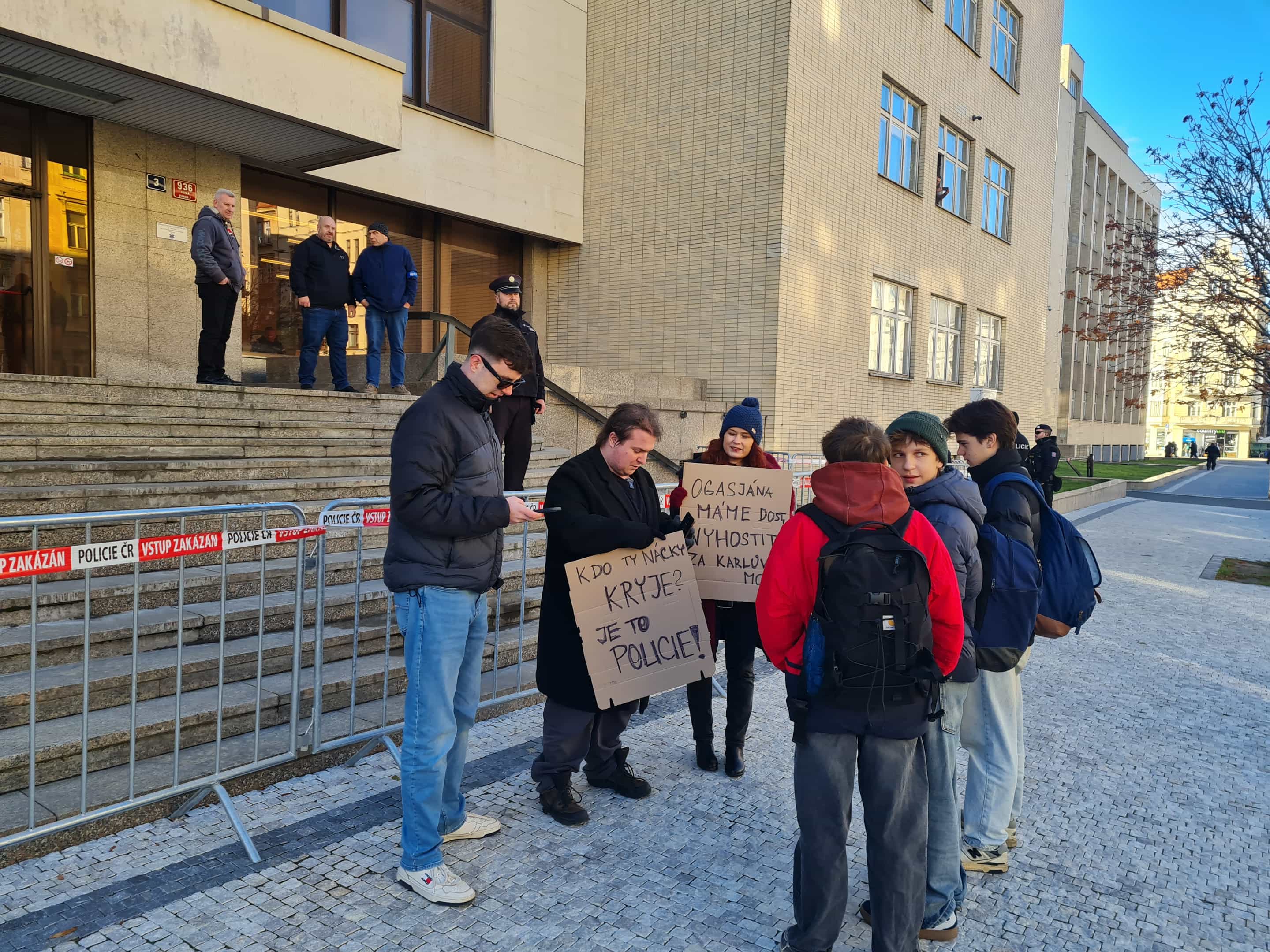 Postupně se před Ministerstvem vnitra shromáždilo zhruba třicet protestujících. Na akci dohlíželo asi deset policistů a členové antikonfliktního týmu. Schody před vstupem do budovy ministerstva byly zapáskované, ale běžný provoz úřadu narušen nebyl a úředníci neměli vstup nijak omezen.