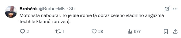 Také pod zprávou České televize o nehodě ministra se objevily další vyhrocené reakce. Jeden z komentujících napsal: „Motorista naboural, to je ale ironie a obraz celého vládního angažmá těch klaunů zároveň.“ Další pak přitvrdil slovy, že nehoda „nemůže víc ublížit jeho křivé páteři a zkurvenému charakteru“.