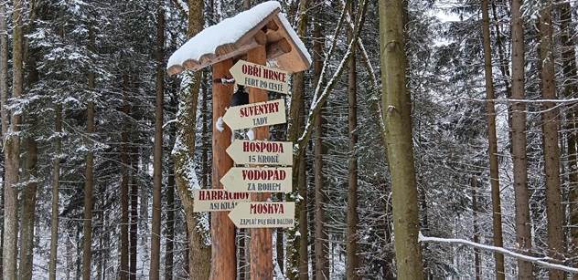„Obří hrnce furt po cestě. Vodopád za rohem. Hospoda patnáct kroků. Harrachov asi kilák. Moskva zaplaťpánbůh daleko,“ je napsáno na rozcestníku u cesty, kterou se jde údolím říčky Mumlavy na vrcholky Krkonoš. Po nich přecházíme nejvyšší české pohoří. Zvláště v zimě stojí – přeneseně i reálně – taková výprava za všechny prachy…