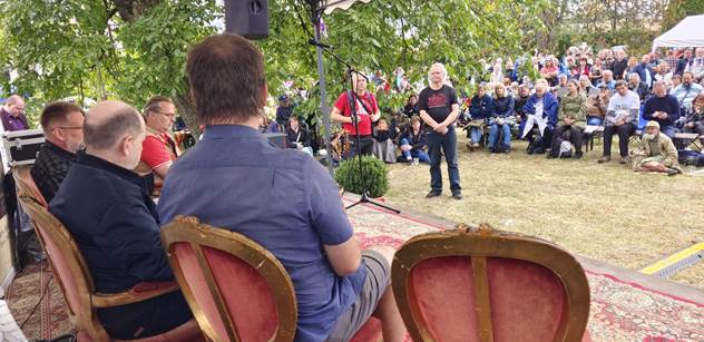 "Udělali si tady nějakou akci, kterou jim starosta povolil. Šli úplně k plotu, na mikrofon tam pouštěli nějaké ukrajinské písničky, nějaké sprosté písničky, a pouštěli to tady nám, aby nám to tady narušovali. Aparatura dělala celkem velkej kravál," dodal Valoušek.
