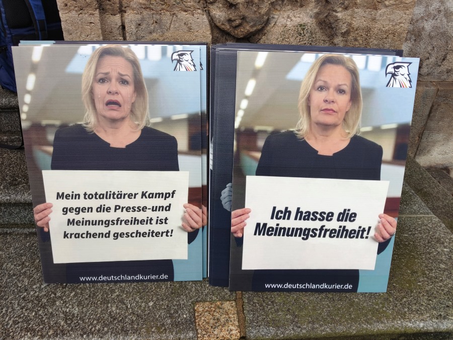 Příznivci Davida Bendelse už byli tedy na verdikt připraveni a hned po ukončení soudního procesu měli připraveny další plakáty, tentokrát nejen s původním memu ministryně Nancy Faeserové od Davida Bendelse s tím, že „Nenávidím svobodu projevu“, ale hned je doplnili dalšími memy, které zobrazovaly tentýž portrét ministryně, tentokrát se tvářící ublíženě a zoufale držící pro změnu text „Můj totalitní boj proti svobodě slova a svobodě tisku utrpěl drtivou porážku.“ Tyto oba druhy plakátů na kartonu ve velikosti asi A1 pak rozestavěli kolem soudu na znamení, že ode dneška se už zase mohou politici v Německu kritizovat a může se na ně dělat i satira.