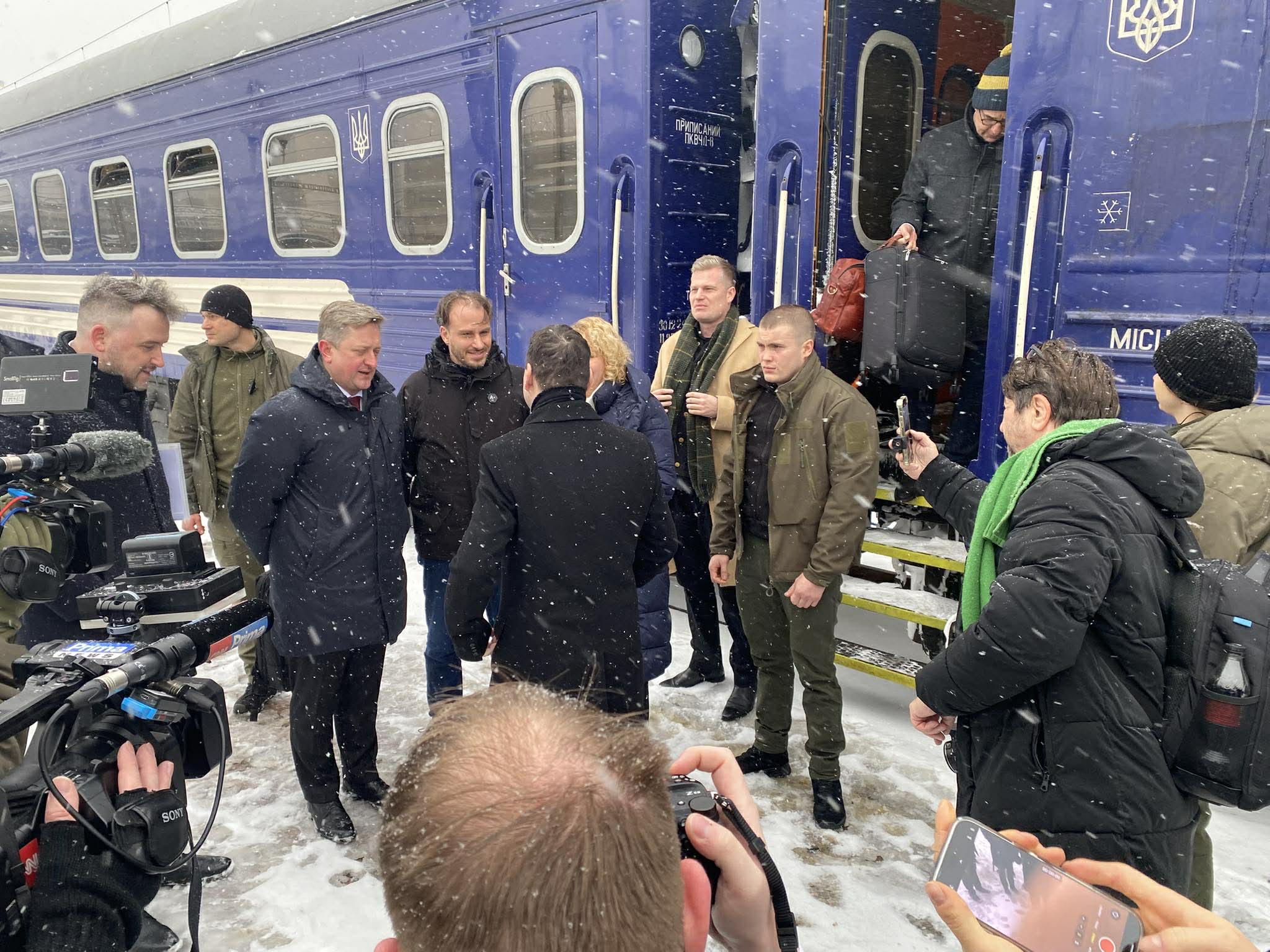 Na kyjevském nádraží českou delegaci vítal ukrajinský velvyslanec v Praze Vasyl Zvaryč.