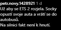 „Už aby se ETS 2 rozjela. Socky opustí svoje auta a vrátí se do autobusů. Na silnici fakt není k hnutí,“ doufají další ve zdražení pohonných hmot.