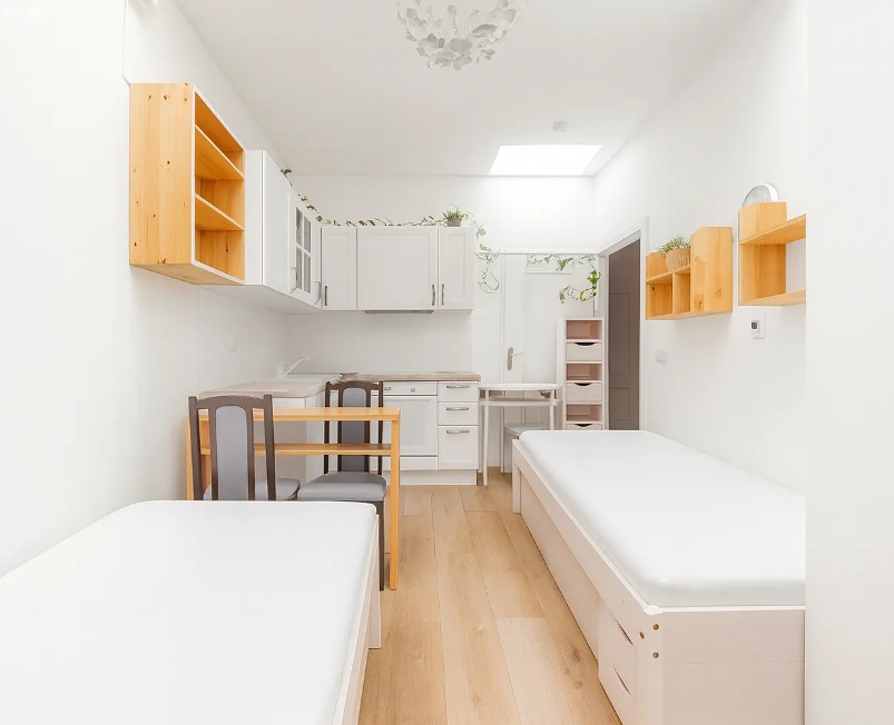 Pro spoustu lidí je ale malé bydlení nutnost, kterou jim diktují jejich finanční možnosti. Z aktuálních dat portálu Sreality vyplývá, že starší byty zdražily meziročně skoro o pětinu, v Praze, kde jsou ceny dlouhodobě nejvyšší, to bylo o 14 %. To je důvod, proč bydlení na ploše menší než 20 metrů čtverečních není v Praze ani v dalších velkých městech výjimkou. Takzvané mikrobyty nabízejí nejnižší celkovou cenu, ale patří k nejdražším v přepočtu ceny na jeden metr čtvereční obytné plochy. Na největším inzertním serveru Sreality.cz jsme zjistili, že v Praze se nabízí na prodej 17 bytů o velikosti do 20 metrů čtverečních. Nejlevnější byt v nabídce má dispozici 1+kk, rozlohu 19 m² a nachází se v podkroví činžovního domu v pražské Krči. S cenovkou 2 miliony 736 tisíc korun tu vychází metr čtvereční na 144 tisíc korun. V bytě je rozkládací postel, metr od ní je malá kuchyňská linka, sprchový kout a záchod jsou samostatně.