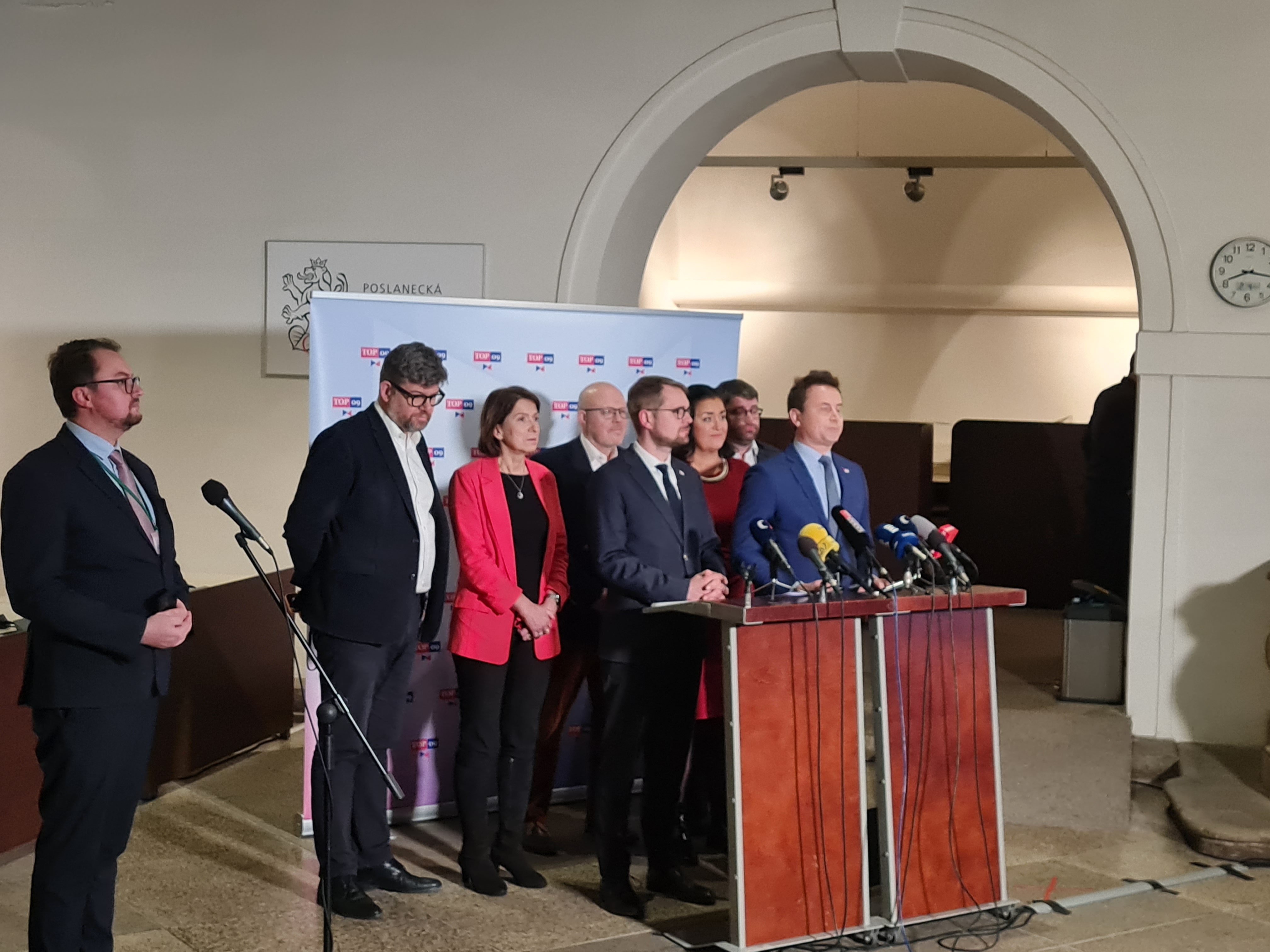 „TOP 09 reprezentuje všechny občany, pro které je nepřijatelné vydírání prezidenta republiky panem Macinkou,“ pokračoval předseda Matěj Ondřej Havel.