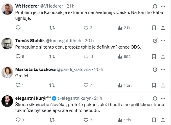 Další přispěvatel reagoval mnohem dramatičtěji a napsal, že bychom si „měli pamatovat tento den“, protože podle něj jde o „definitivní konec ODS“.