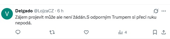 Jeden z uživatelů to shrnul s tím, že prezident sice může projevit zájem, ale nemusí být vítaný. „Pavel sice zájem projevit může, ale není žádán, s odporným Trumpem si přece ruku nepodá,“ narážel na dřívější výroky prezidenta Petra Pavla, v nichž se vůči Donaldu Trumpovi vymezoval.