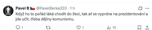 A opakovaně se objevily i výtky k jeho aktivitám mezi studenty. „Když ho to pořád láká chodit do škol, tak ať se vyprdne na prezidentování a jde učit třeba dějiny komunismu,“ zaznělo.