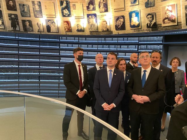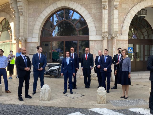 Po návštěvě památníku obětem holocaustu Jad Vašem nad Jeruzalémem, kde oba ministry zahraničí s důkladným výkladem provedla kurátorka českého původu z Prahy, zavítal Petr Macinka do přísně střežené vládní čtvrti na ministerstvo zahraničí. Tisková konference, kterou napjatě očekával jak Macinkův český mediální doprovod, tak řada izraelských novinářů, se uskutečnila se zhruba půlhodinovým zpožděním. Oba ministři si rozuměli a jednání delegací se protáhlo.