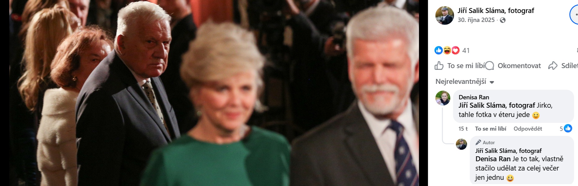 Jiří Salik Sláma fotografuje pro Petra Pavla při různých příležitostech i na Hradě, při posledním 28. říjnu vyvolal rozruch jeho nepříliš důstojný snímek bývalého prezidenta Václava Klause.
