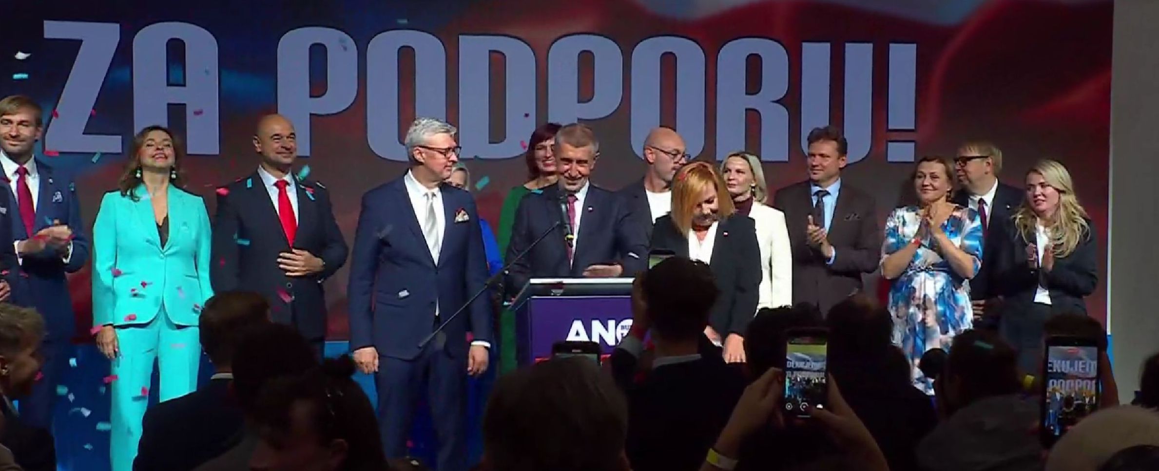 „Pro mě je to absolutně vrchol mé politické kariéry. Doufal jsem, že dostaneme 30 procent. Náš průzkum avizoval 26 procent. Vážíme si toho. Děkujeme!“ volal Babiš.