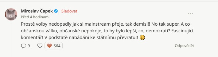 Další z diskutujících po přečtení Mitrofanovova textu připomněl, že podobné úvahy o volání po konci vlády ignorují fakt, že kabinet vzešel ze svobodných voleb: „Prostě volby nedopadly, jak si mainstream přeje, tak demisi. A co občanskou válku? Občanské nepokoje, to by bylo lepší, co, demokrati? Fascinující komentář, v podstatě nabádání ke státnímu převratu,“ konstatoval.