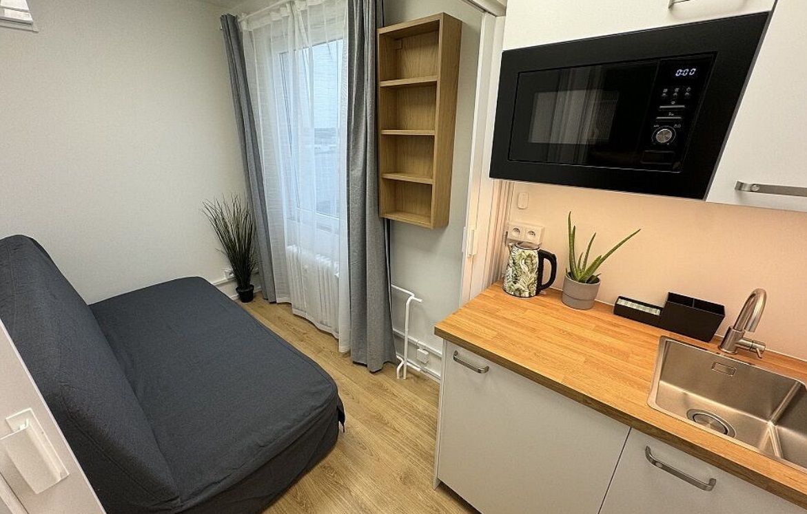 Realitní kancelář přitom zájemcům o levný byt slibuje moderní prosluněný prostor, který navíc označuje jako součást nového rezidenčního projektu. „Dovolujeme si Vám exkluzivně nabídnout zcela nové samostatné jednotky o pouhých 8 m² ve 3. až 7. patře v jedinečném rezidenčním projektu Rezidence Skyline Chodov,“ stojí v inzerátu. Pohled na samotný „byt“ ale dává tušit, že o vysněné bydlení pro mladé úplně nepůjde.