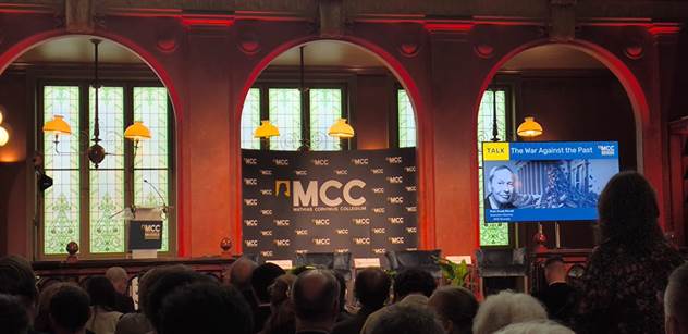 Místo konání konference s názvem „The War Against the Past: Fighting for our history“ (Válka proti minulosti: Boj o naši vlastní historii) nebylo zvoleno náhodou. Akce se konala v ikonické budově knihovny Solvay v bruselském parku Léopold, jen desítky metrů od komplexu budov Evropské unie. Tak trochu jako gesto vzdoru, protože hlavní řečník, profesor sociologie Frank Furedi, se nedávno v Bruselu musel vypořádat se závažným cenzorním zásahem. Jeho nová kniha, podle které byla dnešní akce pojmenována, měla mít před několika týdny křest v místní knihovně. Po nátlaku zvenčí majitelé knihovny Furedimu akci zrušili jen krátce před jejím termínem. Jeho kniha prý totiž byla „příliš politická“.