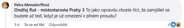 Jeho vyjádření se u obyvatel nesetkalo s velkým pochopením. „To jako opravdu chcete říct, že zamýšlet se budete až teď, když je už omezení v plném proudu?“ zeptala se paní Petra Mensdorffová.