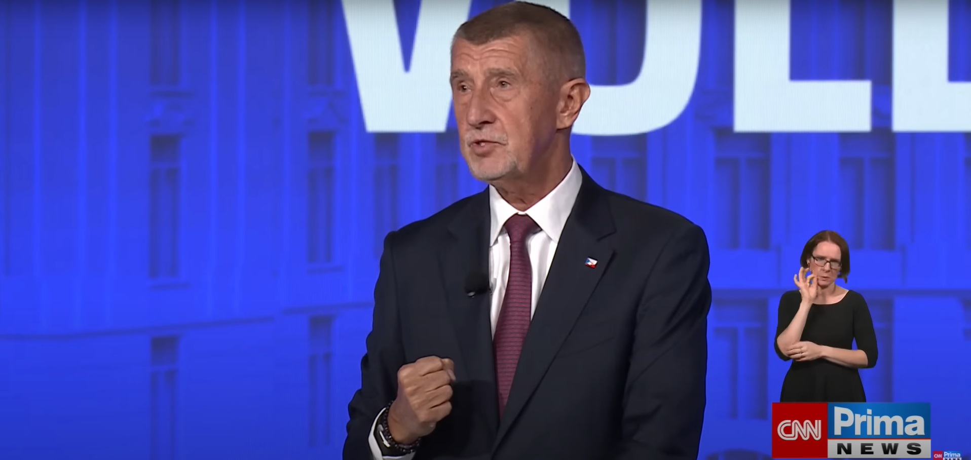 Popisek: Andrej Babiš v předvolební debatě na CNN Prima NEWS