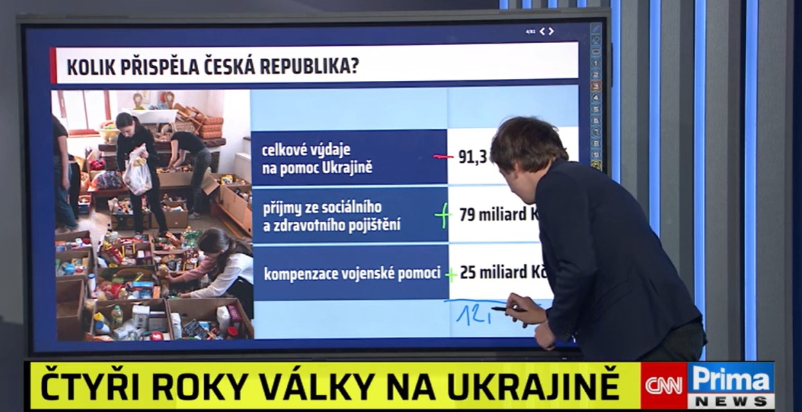 Dalším tématem debaty bylo financování pomoci Ukrajině. Česká republika vydala podle CNN Prima přes 90 mld. korun.
