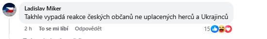 „Takhle vypadá reakce českých občanů, ne uplacených herců a Ukrajinců,“ zněla další z reakcí.