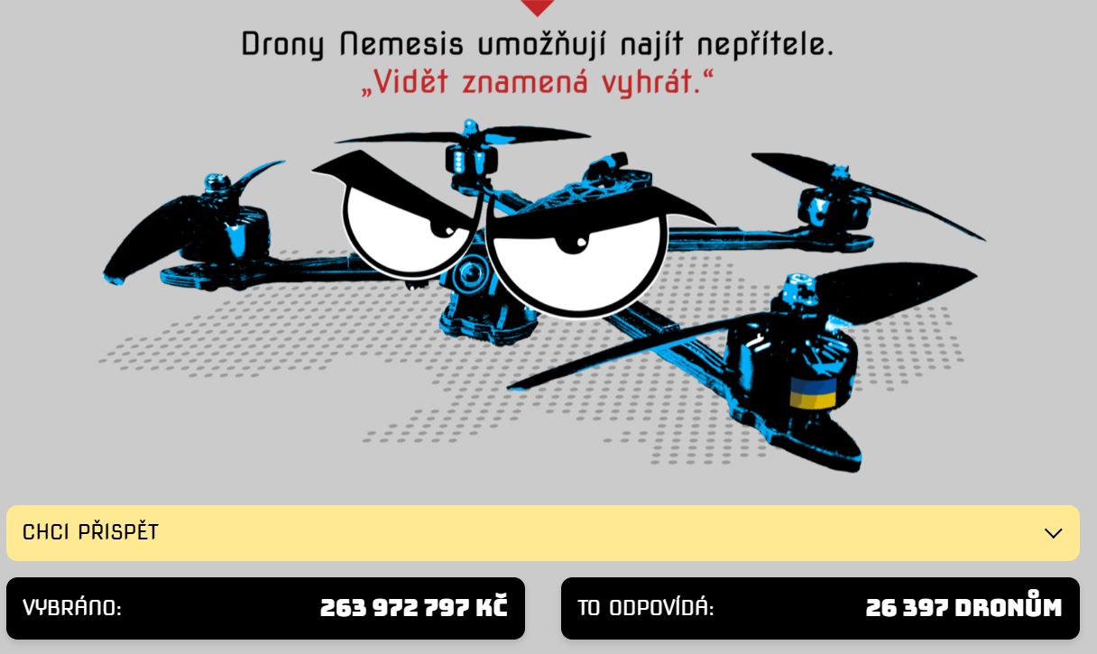Ještě dva dny před volbami (2. října – pozn. red.) se Drony Nemesis chlubily tím, že překonaly hranici 260 milionů korun vybraných na drony pro ukrajinské ozbrojené složky. A to kvůli dvojnásobnému daru v hodnotě 800 000 Kč. Pro srovnání, 5. června bylo dle příspěvků na sociálních sítích vybráno přes 250 milionů Kč a 14. dubna 240 milionů korun.