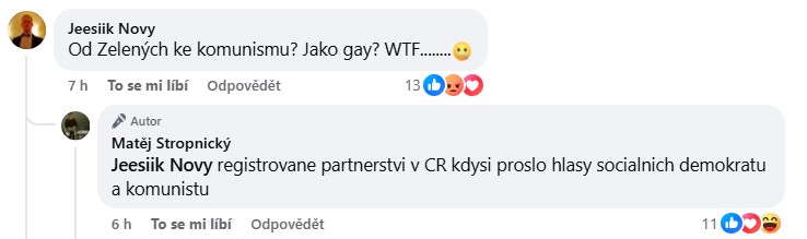 Něktreří dokonce jeho politickou preferenci dávali do souvislosti se sexuální orientací. Jeden z komentujících napsal: „Od zelených ke komunismu? Jako gay?“ Stropnický na tuto narážku odpověděl připomínkou, že právě levice měla zásadní roli při prosazování práv menšin: „Registrované partnerství v České republice prošlo kdysi hlasy sociálních demokratů a komunistů.“