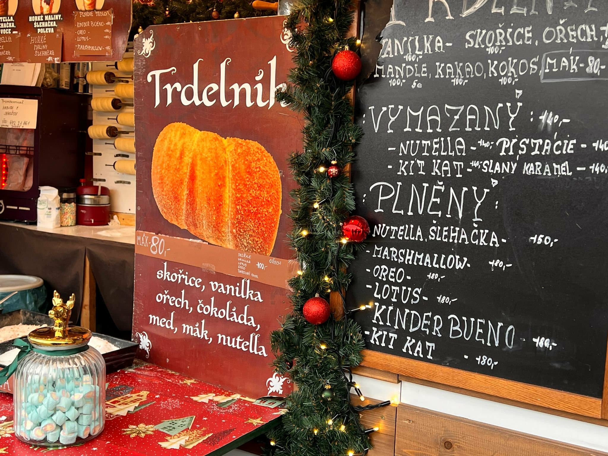 U stánků v adventním městečku nechybí ani sladkosti, nad jejichž cenou ale zejména někteří rodiče možná až slzu uroní. Našli jsme například trdelník „Kinder bueno“ za 180 korun, za stejnou cenu byl pak například plněný trdelník „Lotus“ nebo „Kit kat“. Pokud by vám stačil „obyčejný“ trdelník, například se skořicí nebo s kokosem, můžete si ho u stejného stánku dát za stovku. Stejnou cenu jsme objevili u jiného stánku i pod donutem. K mání jsou různé druhy. Zaujali nás i pečené kaštany, 100 gramů za 69 korun. Viděli jsme také kremrole, padesát korun za kus, nebo palačinky, například ta s nutellou a cukrem byla za 130 korun.