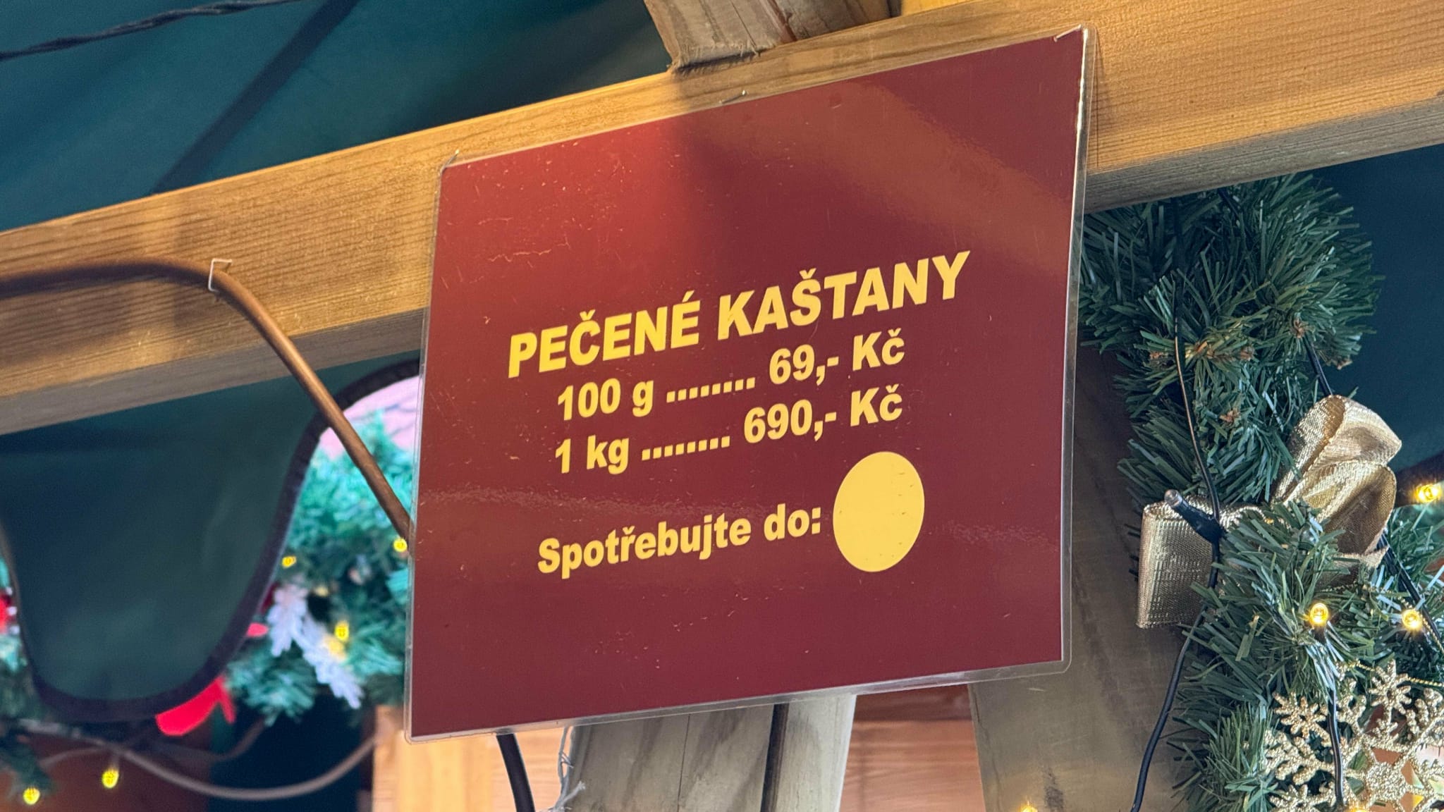 Donut za stovku, pečené kaštany 100 gramů za 69 korun…..