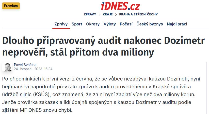 Pak se ale začaly dít věci. Lze se jen domnívat, zda se vedení kraje zaleklo dopadů, které by mohly případně odhalené nesrovnalosti za působení jím vybraného kandidáta na ředitele na pověst jejich domovských partají a na jejich volební preference. Nasvědčuje tomu ale fakt, že i když bylo v podmínkách auditu jasně napsáno, že auditované osoby budou vybírány po dohodě se Středočeským krajem a navíc, že budou auditovány osoby spojené s kauzou Dozimetr, na hlavní postavu středočeské větve této kauzy se „zapomnělo“.