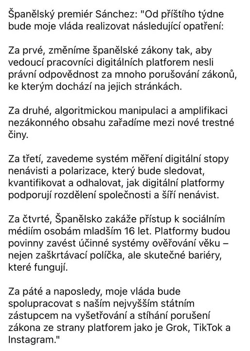 Španělský socialistický premiér Sánchez oznámil sérii drakonických opatření, omezujících provoz na sociálních sítích a potenciálně kriminalizujících ideologicky nevhodné názory.