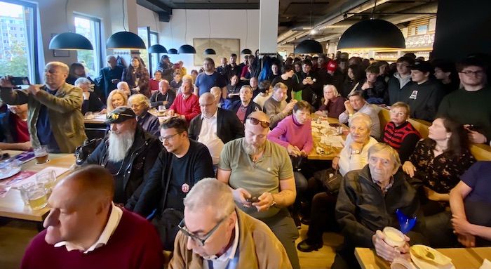 Setkání bylo jiné i složením obecenstva. V publiku sice seděla zhruba dvacítka až třicítka příznivců s vyšším věkovým průměrem, ale tuto část dalece převyšovala mladá generace. Muži i ženy ve věku kolem dvaceti let stáli všude kolem a v průběhu diskuse se aktivně zapojovali, a to nejen dotazy, ale i bouřlivými potlesky a skandováním hesel jako „Jani, děkujeme“ nebo „Miloš na Hrad“.