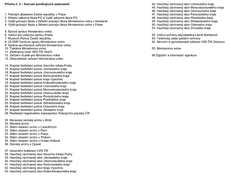 Seznam subjektů spadajících pod MV ČR, kterým je zařízení určeno:
